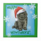Celebrate the holiday season with a cute Newfoundland puppy wearing a Santa hat amid snowflakes and the words, Happy Howlidays! Great holiday gift idea for Newfie-loving family and friends.