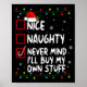 Christmas Nice Naughty Never Mind I'll Buy My Own Poster