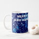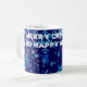 Deep blue Christmas night and heavy snowfall. Beautiful snowflakes large and small. Merry Christmas and Happy New Year! Let your best wishes come true! Let the health, love, and prosperity be with you! Coffee mug. You can change or delete the template text Merry Christmas And Happy New Year