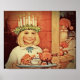 Dressed as Santa Lucia for Lucia Day in Sweden. Little girl holds a platter of cookies and hot cocoa for the Nisse who is peeking around the door. Vintage Christmas artwork by Carl Larsson