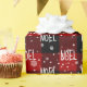 White NOEL text with snowflakes on red and black buffalo plaid background.
