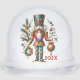 Celebrate the season with a custom snow globe featuring a colourful nutcracker adorned with holiday symbols and greenery. Customisable year.