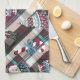 Christmas Nutcracker Plaid Blue Burgundy Tea Towel