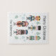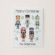 This Christmas keepsake puzzle features a classic toy soldier nutcracker theme. Five different vintage style nutcrackers are printed in a watercolor painting design, and accented with winter branches and snowflakes. A "Merry Christmas" greeting is printed across the top, with a sample family name printed at the bottom. You can personalise the puzzle to include your own custom name or text.