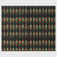 Delightful traditional Christmas nutcrackers of various types and colors on a black background. Beautiful holiday wrapping paper.