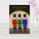 Fun Christmas greeting with a colourful nutcrackers in red, blue and green coats. See other products with similar image.