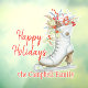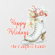 Charming  Holiday window cling customisable for home or business use, features watercolor illustration of vintage style ice skating shoe filled with Christmas foliage