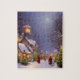 This jigsaw puzzle has an image of a vintage beautiful Christmas village on a snowy night.