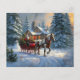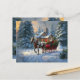 Santa driving a one-horse sleigh to deliver Christmas presents in a small town