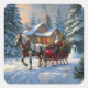 Christmas One-horse Sleigh Santa Square Sticker