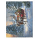 Santa driving a one-horse sleigh to deliver Christmas presents in a small town