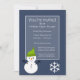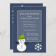 Holiday Invitation with a cute cartoon snowman and a navy blue background