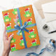 Christmas Orange Frog Santa Hat Pattern Novelty Wrapping Paper