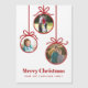 A simple and modern Christmas ornament holiday photo card. Replace the family photos with your own, and change the name and greeting to customise. Photo credit: Photography © Storytree Studios, Stanford, CA