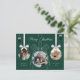 Spread holiday cheer with this festive postcard featuring hand-drawn bows that crowns three of your favourite photos in circular frames - creating the look of festive Christmas ornaments. The elegant green and white holiday postcard includes 'Merry Christmas' in a handwritten script font and your custom family name; on the back you can add a custom message and a return address.