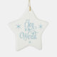 Star ornament is shown in blue and white with a stars Joy to the World print.