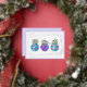 This is a beautiful 7"x5" flat lavender-coloured Christmas card with real silver-coloured foil accents on the front. Three beautiful Christmas ornaments grace the front of the card surrounded by silver-coloured foil frames. The reverse side features beautiful messaging that says: "May love and joy be your gift at Christmas. May faith and hope be your promise in the New Year." There is also a placeholder for who the card is from - be sure to update this one prior to placing into your shopping cart.