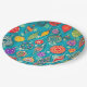 Featuring a fun colourful pattern of Christmas ornaments on blue background, this lovely paper plate is sure to give your holiday party a festive feel.