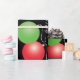 This Christmas wrapping paper features two traditional round Christmas ornaments, one red and one green in a pattern on a black background and the words Merry Christmas. Five of the ornaments across the length of the paper are a customisable photo frames, allowing you to add your favourite family photos.