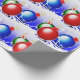 This image portrays Christmas balls in red, blue and green. Ribbons and stars in white, blue and red are seen throughout. A blue backround was added. A glitter was added to this design. This image was tiled. This Christmas wrapping paper is available in assorted styles and sizes.