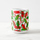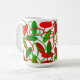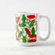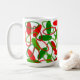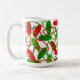 This mug has a Bauhaus design of ovals and oval outlines in red and green.