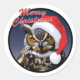 Christmas Owl - Classic Round Sticker, Glossy. Contains writing, "Merry Christmas". Merry xmas to all!