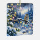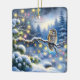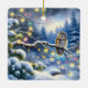 Christmas Owl in a Magical Winter Forest Ceramic Ornament