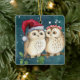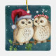 Christmas Owls on Branch at Night Ceramic Ornament