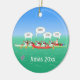 Decorate your Christmas tree with Santa and the snowmen paddling their OC-6 outrigger canoe. Personalise with name, year or other message.