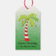 Personalise your holiday gifts with these custom gift tags. It has a green gradient background with a Christmas palm tree with colourful hanging ornaments . Add a name and customise the font style, colour, or size.