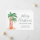 Are you moving to a tropical destination this Christmas? This festive moving announcement card features watercolor palm trees decorated with colourful string lights and stylish script typography. Easily customisable. Original Watercolor © Michele Davies.