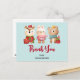 Thank you postcard with a cute illustration featuring a bunny, a bear and a deer all dressed in festive gear. Adorable and whimsical.