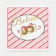 This paper napkin is shown in White with a festive Christmas bells print on a candy cane stripes background.