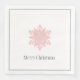 These standard style napkins are shown in the dinner size. Shown with a single, bold Pink snowflake in the centre on a white background, a thin silver-grey border with white outer border edges, and text reading Merry Christmas.