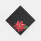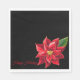 These standard style luncheon napkins are anything but standard. Shown with a single bold red poinsettia in the lower corner on a black background, and text reading Happy Holidays.
