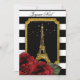 Christmas Paris Rose Eiffel Tower Black & White Stripe party invitation for you to customise.