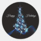Christmas Party Blue Tree Shiny Black Elegant Classic Round Sticker