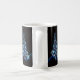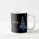 Christmas Party Blue Tree Shiny Black Elegant Coffee Mug. Unique, beautiful, stylish design. Easy to be personalised. Font style, size and colours can be changed. Matching items are available.