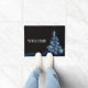 Christmas Party Blue Tree Shiny Black Elegant Doormat