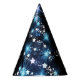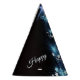 Christmas Party Blue Tree Shiny Black Elegant Party Hat. Unique, beautiful, stylish design. Easy to be personalised. Font style, size and colours can be changed. Matching items are available.