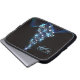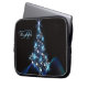 Christmas Party Blue Tree Shiny Black Elegant laptop sleeve. Unique, beautiful, stylish design. Easy to be personalised. Font style, size and colours can be changed. Matching items are available.