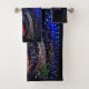 Christmas Party Colourful Tree Navy Blue Rustic Bath Towel Set. Unique, beautiful, stylish design. Easy to be personalised. Font style, size and colours can be changed. Matching items are available.