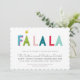 A super fun card design featuring the quote "FA LA LA" in colourful type. THE perfect design for a fun Christmas / holiday themed party the celebrate the season!