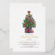 Celebrate the season in style with this vibrant and whimsical Christmas Party invitation, featuring a watercolor fir tree adorned in playful shades of pink, magenta, purple, and gold. Nestled in a rustic wicker basket and surrounded by festively wrapped gifts, the tree sparkles with bows, bells, ornaments, and gingerbread accents—topped with a charming magenta bow and bells. Handwritten calligraphy script in real gold foil features "Christmas Party" and your family name and pairs with a clean sans serif font in coordinating grey for a modern, joyful look. The back showcases a coordinating tree with customisation of name and date. Perfect for holiday soirées, cocktail parties, or corporate events, this eye-catching design captures the bright pink Christmas trend of 2025 with elegance and cheer.