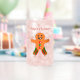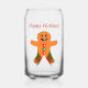 This awesome can glass features a cute cartoon of a colourful gingerbread man. he has red and green buttons, a big smile on his face and red and green tassels around his legs ready for a Christmas party. There is custom text so you can include a name or message. The default message reads Happy Holidays.
