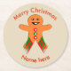 This awesome paper coaster features a cute cartoon of a colourful gingerbread man. he has red and green buttons, a big smile on his face and red and green tassels around his legs ready for a Christmas party.