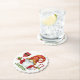 These fun drink coasters feature a cute image of a gnome elf dressed in a red and gold reindeer pattern Santa hat. He holds a Santa Claus wine glass in one hand, and a red and white striped candy cane in the other. At the bottom is a custom text field, which is shown saying Cheers! in matching green. Festive and colourful for your Holiday gatherings!