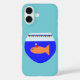 This awesome iPhone case features a fun orange Christmas goldfish wearing a festive santa hat. The goldfish is swimming in the blue water of its goldfish bowl. The fish has decorated the top of the bowl with red and green bunting flags that spell out the message "Merry Fishmas". This fun seasonal fish is ready for a big Christmas party.