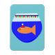This awesome magnet features a fun orange Christmas goldfish wearing a festive santa hat. The goldfish is swimming in the blue water of its goldfish bowl. The fish has decorated the top of the bowl with red and green bunting flags that spell out the message "Merry Fishmas". This fun seasonal fish is ready for a big Christmas party.