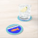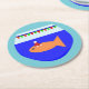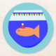 This awesome paper coaster features a fun orange Christmas goldfish wearing a festive santa hat. The goldfish is swimming in the blue water of its goldfish bowl. The fish has decorated the top of the bowl with red and green bunting flags that spell out the message "Merry Fishmas". This fun seasonal fish is ready for a big Christmas party.